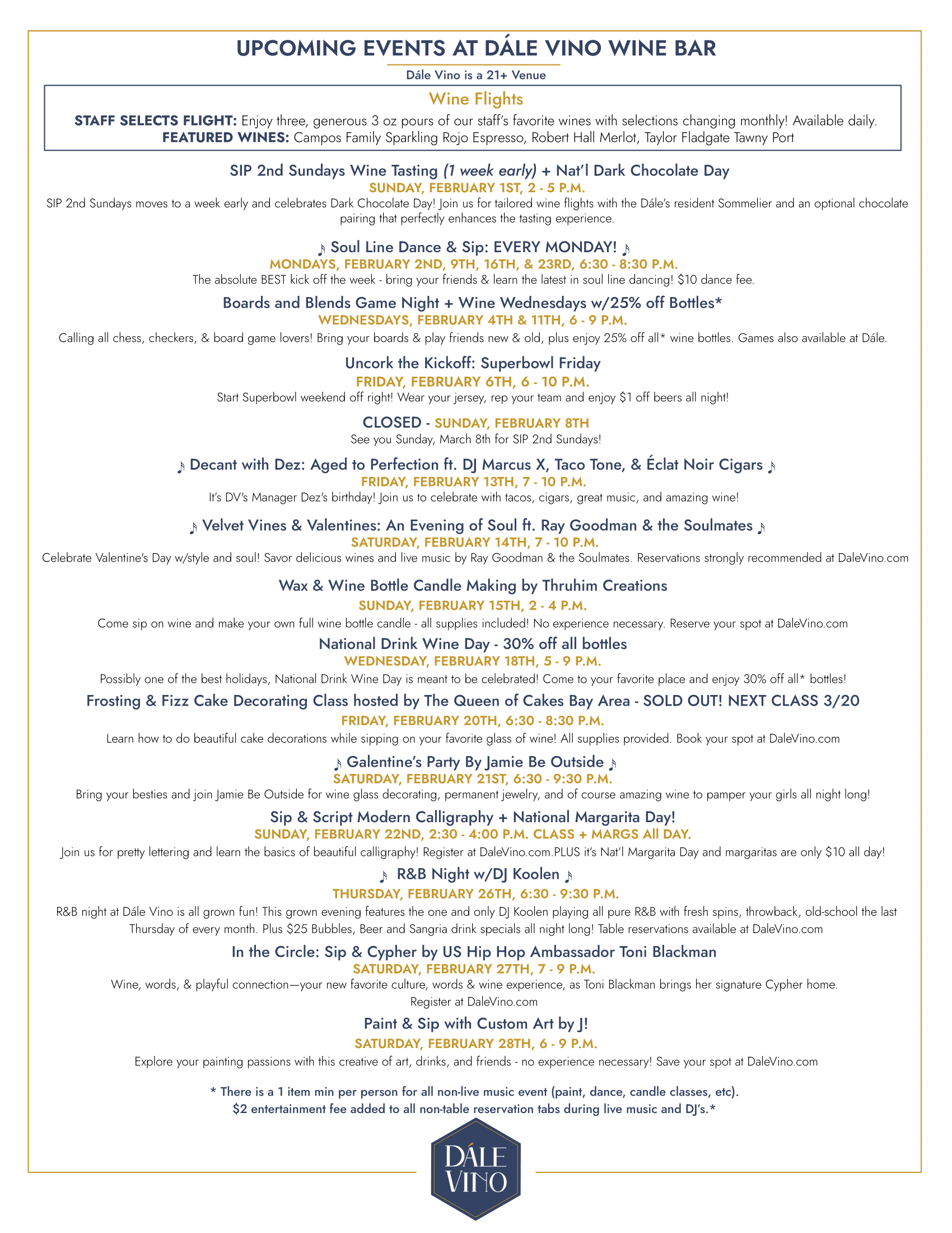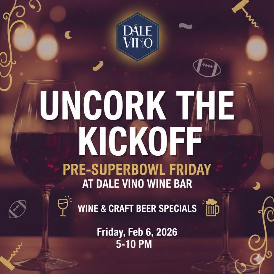 Kick off Superbowl weekend in style with great wine, craft beer, and good company. Rep your favorite team and join us for wine and beer specials all night long!