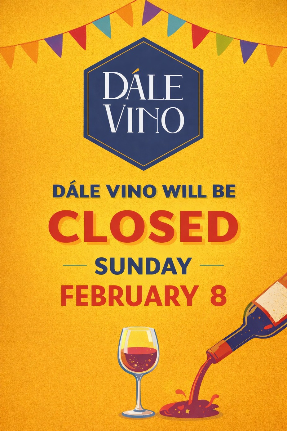 Dále Vino is closed Sunday, February 8, 2026. See you Monday, February 9.