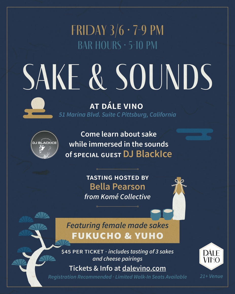 Join Dále Vino for a special tasting led by Bella Pearson from Komé Collective where we'll savor the unique tastes of female-made sakes while vibing to sounds of DJ Black Ice! Featuring female-made sakes Fukucho and Yuho, we'll experience a tasting of 3 sakes and cheese pairing during this immersive event.