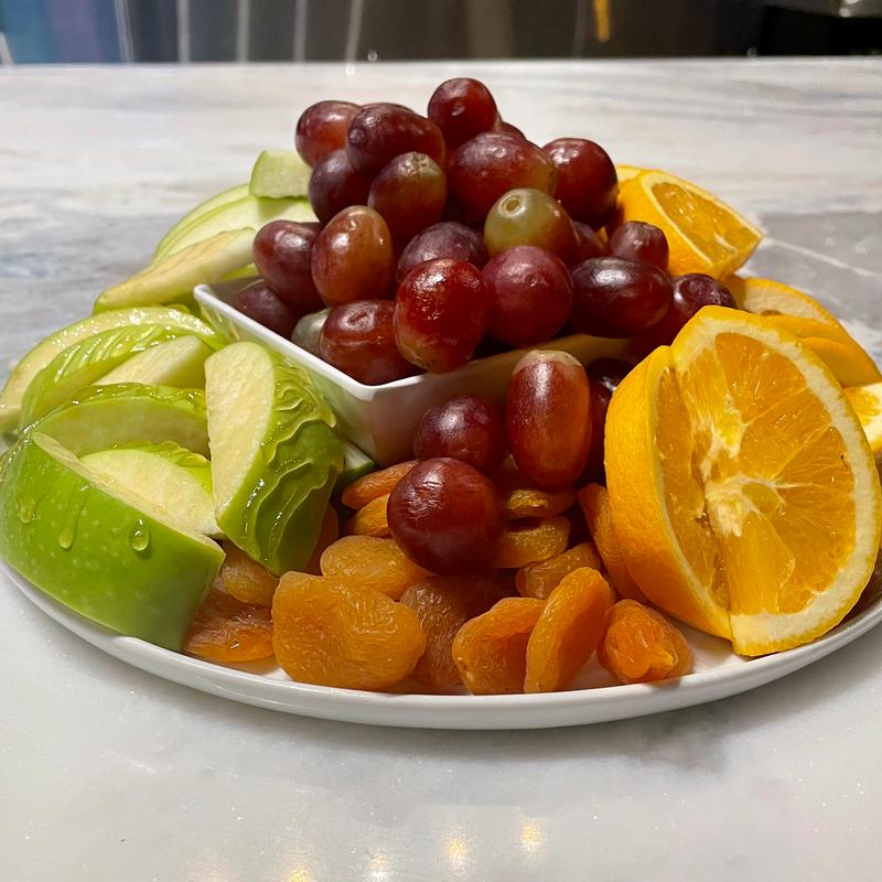 Fresh, seasonal fruit, veggies or both, beautifully served.